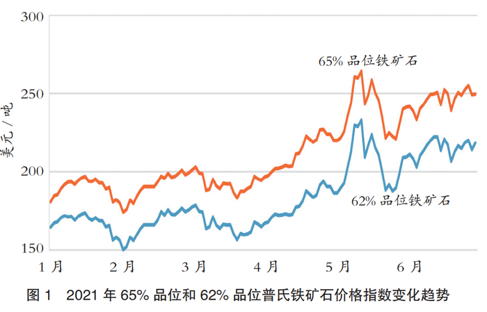 二季度,铁矿石供应紧张和需求强劲推动价格达到前所未有的高度,普氏品位62%和65%铁矿石价格指数屡创新高,并在5月12日分别达到233.10美元/吨和264.20美元/吨的历史新高(见图1)。中国建筑业施工淡季钢材需求减弱,铁矿石采购减少,但在供应紧张的情况下,价格仍在200美元/吨以上。