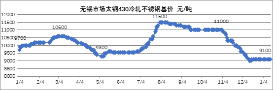 2021年430不锈钢冷轧产品(太钢不锈)从年初9700元/吨,缓慢上涨至3月初10600元/吨,环比上涨900元/吨,随后因原料铬铁走弱及需求未达到预期出现价格阴跌,5月上旬一度跌至9300元/吨,跌破年初9700元/吨的价格,环比上半年高点下跌11300元/吨。5月中旬迎来了国内大宗商品价格暴涨,尤其是普碳钢走势火热,430不锈钢在大环境的刺激下再次上涨至8月中上旬11500元/吨,此波阶段性涨幅1200元/吨。8月中下旬后,随着原料铬铁回落,地产去杠杆及家电出口走弱影响,430不锈钢价格出现了4个多月的走弱行情,12月中旬出现9000元/吨的年度最低价,环比年内高点下跌2500元/吨。400系不锈钢相比镍系不锈钢是唯一价格跌破年初的不锈钢品种。