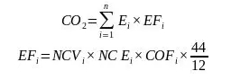 CO2是碳排放总量,Ei是能源消耗,EFi是碳排放因子,NCVi是平均低热量值,NCEi是单位热量值的碳含量,以及COFi是碳氧化率,计算中所需各项因子参考标准来自IPCC 2006年版的《国家温室气体排放清单指南》。