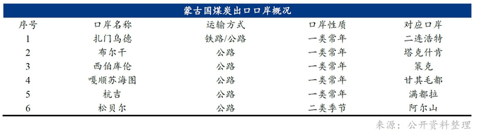 1.中蒙煤炭运输口岸分布