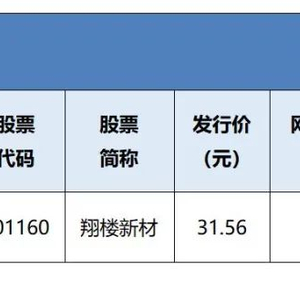 5月23日,苏州翔楼新材料股份有限公司(以下简称“翔楼新材”或“公司”)将正式开启申购。公司此次公开发行股票数量为18,666,667股,其中网上初始发行数量为5,320,000股,股票代码“301160”,申购代码“301160”,发行价格31.56元/股。