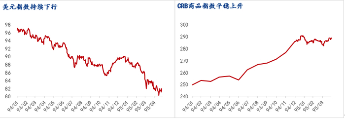 (三)第三轮加息1994.02-1995.02:加息周期内,大宗商品价格偏强,而美元指数却下行