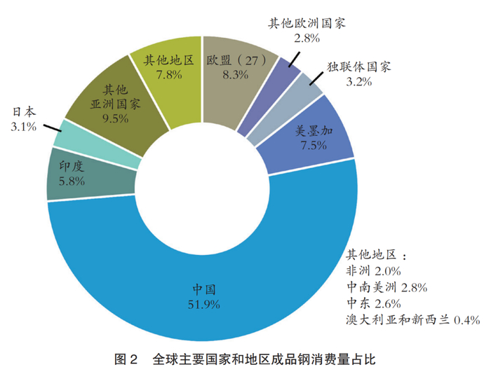 2021年全球人均钢材表观消费量233千克,重回疫情前水平