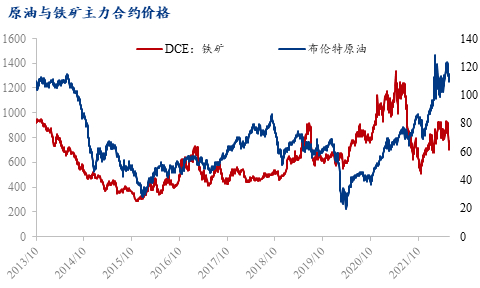 原油作为基础的能源化工原料,其价格上涨将直接提高能化产品成本,这方面已有较多研究,本文不作细究,将重点考察原油与黑色系大宗商品的关系。