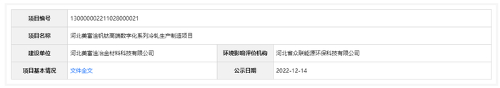 2022年12月14日,根据建设项目环境影响评价审批程序的有关规定,经审议,河北省生态环境厅拟对河北美富淦钒钛高端数字化系列冷轧生产制造项目建设项目环境影响评价文件作出准予批准意见。