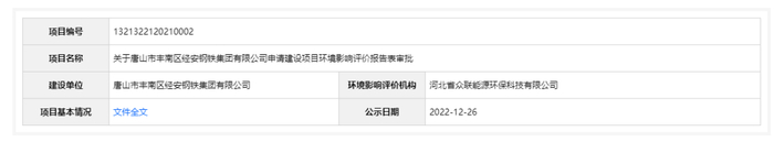 2022年12月26日,根据建设项目环境影响评价审批程序的有关规定,经审议,河北省生态环境厅拟对山市丰南区经安钢铁有限公司850mm高性能热轧合金带钢工程环境影响评价文件作出准予批准意见。