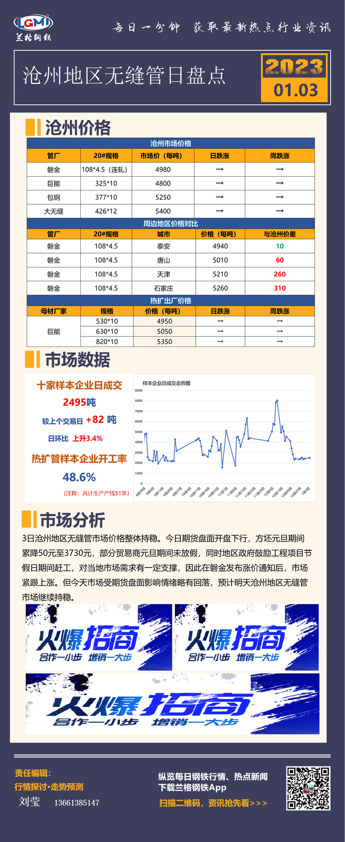 沧州无缝管日盘点:成交尚可 元旦期间价格小幅上扬