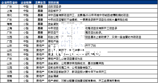本次调研有7家建筑企业反馈本年度有项目提前进行,以基建为主,实录如下: