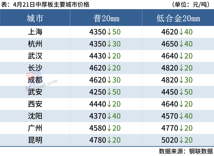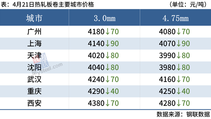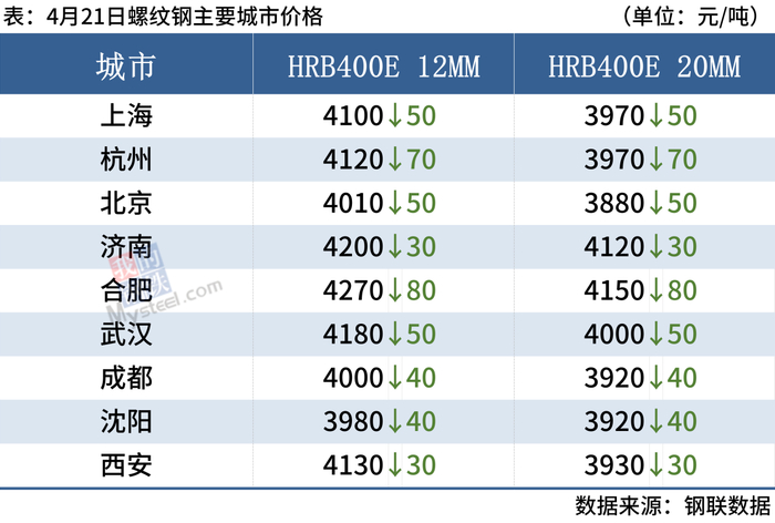 4月21日,国内钢材市场下跌,唐山迁安普方坯出厂含税降80报3660元/吨。成交方面,随着期螺继续下挫,市场低价资源涌现,部分商家为促成交增加优惠。