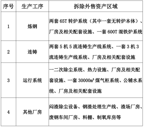山西星原钢铁【炼钢资产包】以107500000元成交,具体拆除外售资产区域包括: