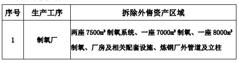 山西星原钢铁【制氧资产包】以29000000元成交,具体拆除外售资产区域包括: