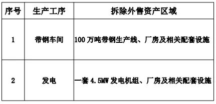 山西星原钢铁【带钢资产包】以35550000元成交,具体拆除外售资产区域包括: