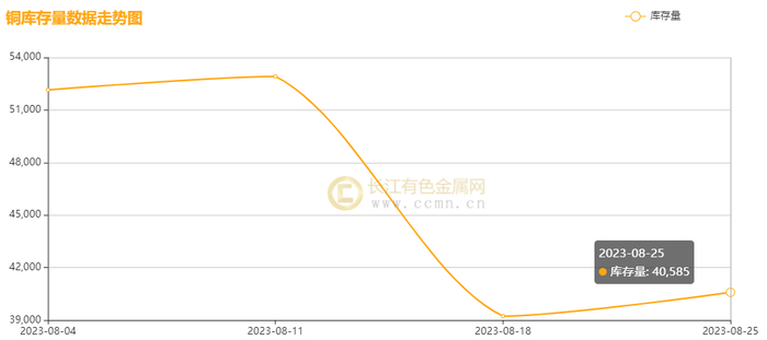 8月25日当周,国内现货铜价偏强上行。长江有色金属网数据显示,长江现货1#铜均价报69336元/吨,日均上涨86元/吨;此前一周均价报68522元/吨,环比上周均价上涨814元/吨,累积涨幅1.19%。广东现货1#铜均价报69080元/吨,日均上涨102元/吨,此前一周均价报68224元/吨,环比上周均价上涨856元/吨,累积涨幅1.25%。