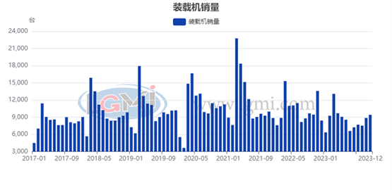 据中国工程机械工业协会统计数据显示,2023年12月份,装载机主要制造企业统计销售各类装载机9418台,同比增长11.9%;其中国内市场销量5599台,同比增长8.47%;出口销量3819台,同比增长17.3%。2023年1-12月,共销售各类装载机103912台,同比下降15.8%。其中国内市场销量56552台,同比下降30.1%;出口销量47360台,同比增长11.5%。2023年1-12月共销售电动装载机3595台(3吨17台,5吨2765台,6吨813台),其中12月销售516台。