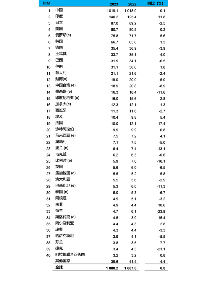 【国际钢铁】2023年全球粗钢产量为18.827亿吨