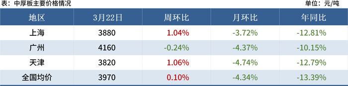 中板资源库存呈现下降趋势,板材消耗速度待进一步提升,而采购端心态依旧谨慎,预估本周中厚板价格探底寻涨,有小幅回涨的预期。