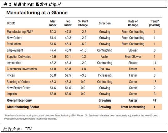 美国商务部公布的数据显示,PCE同比水平较上月略增至2.5%符合市场预期,核心同比2.8%继续较上月回落,趋势下行不改。另外,得益于环比上月生产端的显著提升,美国3月ISM制造业指数也升至50.3,为2022年9月以来首次进入扩张区间,物价、新订单、生产等分项指数纷纷上升。由于2月美联储褐皮书报告部分地区制造业企业受价格和异常天气影响,供应的恢复进程在电子元件生产方面仍有阻碍,也为3月PMI的强势上涨奠定基础。而且进入2月以来,商品零售销售有所转强,新订单需求增长叠加企业库存水平的进一步下降,这也使前期的积压订单拖累影响减弱,成为带动3月企业生产积极性上升的主要因素,反映出当前其国内商业活动需求的带动作用向原料端的传导已经形成。