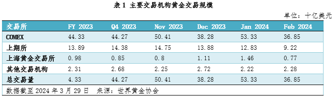 而在美国经济实现软着陆的同时,全球主要经济体增长预期的改善也将引领未来实际利率水平的走低,进而提振黄金市场整体在资产配置领域的需求。根据世界黄金协会数据,今年2月以来黄金价格流动性规模持续扩大,3月全球交易所流动性规模达到987.1亿美元,较去年四季度平均水平扩大了59%,反映出全球黄金交易热度的持续提升。除了源自黄金市场基本面因素影响外,国际地缘风险因素的强化也是导致黄金作为避险资产价格走强的重要的原因。短期来看,地缘风险问题对金价的推动仍不可忽视,仍将支撑黄金价格的偏强运行。
