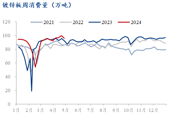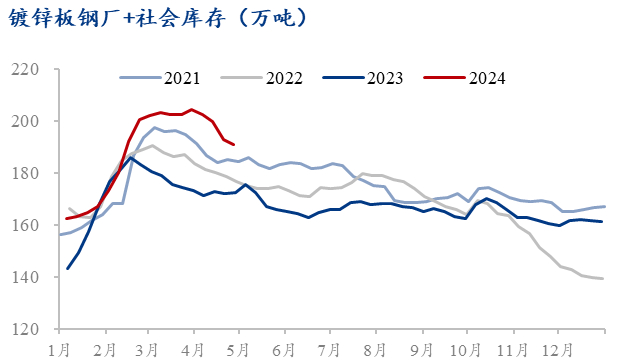 ②镀锌:供应维持,库存压力下降,5月价格预计盘整运行
