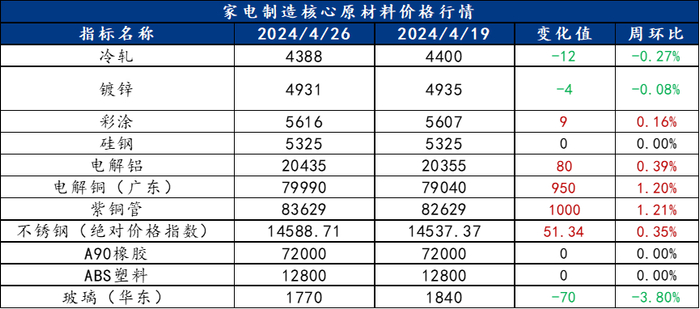从调研的家电行业数据来看,原料需求端企业4月份库存量环比减少1.06%,随着制造业、地产、库存、资本开支周期渐趋同步,全球PMI重回扩张,叠加铜、铝等工业金属处于库存水平低位,成本端价格持续拉涨,压缩生产企业的利润空间,采购端心态观望情绪加重,存在部分企业择机囤货,利用规模效应抵消成本压力。整体来看,家电行业排产步伐强劲,资源消耗速度仍处高位。