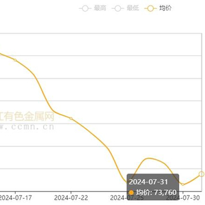 2024年7月,国内现货铜价高位重挫。长江有色金属网——长江现货1#铜月均价报77468.7元/吨,日均下跌175.65元/吨;上月均价报79434.74元/吨,与上月均价相比下跌1966.04元/吨,环比跌幅2.48%。