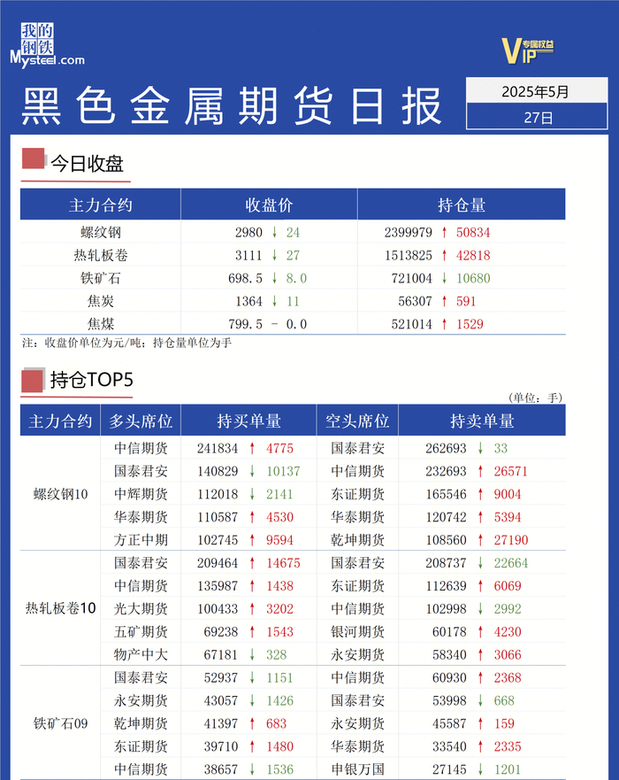 【Mysteel:黑色金属期货日报解读5月27日】研究员:金岭