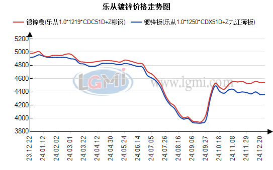 乐从镀锌价格主稳运行。据兰格钢铁云商平台监测数据显示,现镀锌1.0mm价格:柳钢4540元,九江薄板4360元,含税。