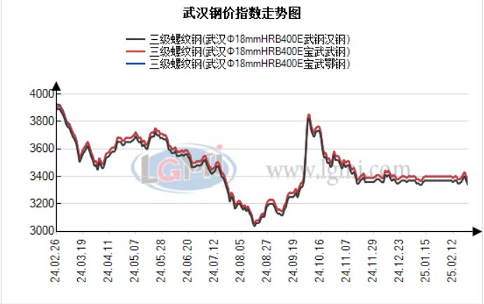 今日武汉建材价格阿降30。据兰格钢铁研究中心监测显示:截至25日,武汉建材市场HRB400EΦ18mm螺纹钢宝武鄂钢3370元,宝武武钢3370元,武钢汉钢3340元;期货螺纹主力合约收跌1.95%,收盘3273元/吨,市场情绪偏空。