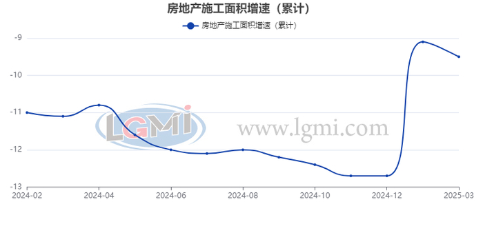 1-3月份,房地产开发企业房屋施工面积613705万平方米,同比下降9.5%。其中,住宅施工面积427237万平方米,下降9.9%。房屋新开工面积12996万平方米,下降24.4%。其中,住宅新开工面积9492万平方米,下降23.9%。房屋竣工面积13060万平方米,下降14.3%。其中,住宅竣工面积9502万平方米,下降14.7%。