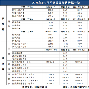 兰格追踪:2025年1-3月钢铁及经济数据一览