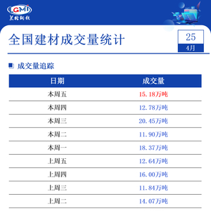 4月25日全国建材成交量小幅增加