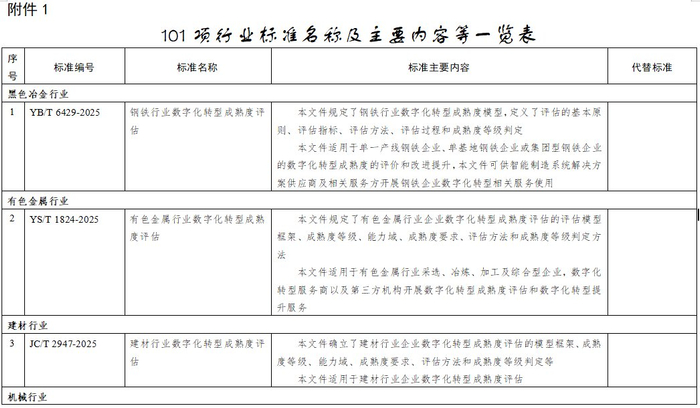 根据行业标准制修订计划,相关标准化技术组织已完成《钢铁行业数字化转型成熟度评估》1项黑色冶金行业标准、《有色金属行业数字化转型成熟度评估》1项有色金属行业标准、《建材行业数字化转型成熟度评估》1项建材行业标准、《工业内窥镜》等64项机械行业标准、《民用飞机试飞飞行事故征候判定标准》等10项航空行业标准、《黑糖》等23项轻工行业标准、《包装制品中淀粉粘合剂用量的测定(酶化-重量法和酶化-比色法)》1项包装行业标准、《植物酵素》等2项轻工行业标准外文版及《汽车车门外拉手》1项汽车行业标准修改单的编制工作。在以上行业标准、行业标准外文版及行业标准修改单发布之前,为进一步听取社会各界意见,现予以公示,截止日期2025年6月8日。