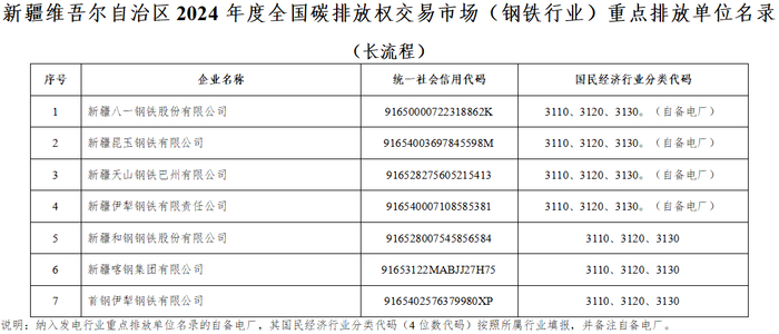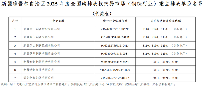 新疆公示2024、2025年度全国碳排放权交易市场(钢铁行业)重点排放单位名录