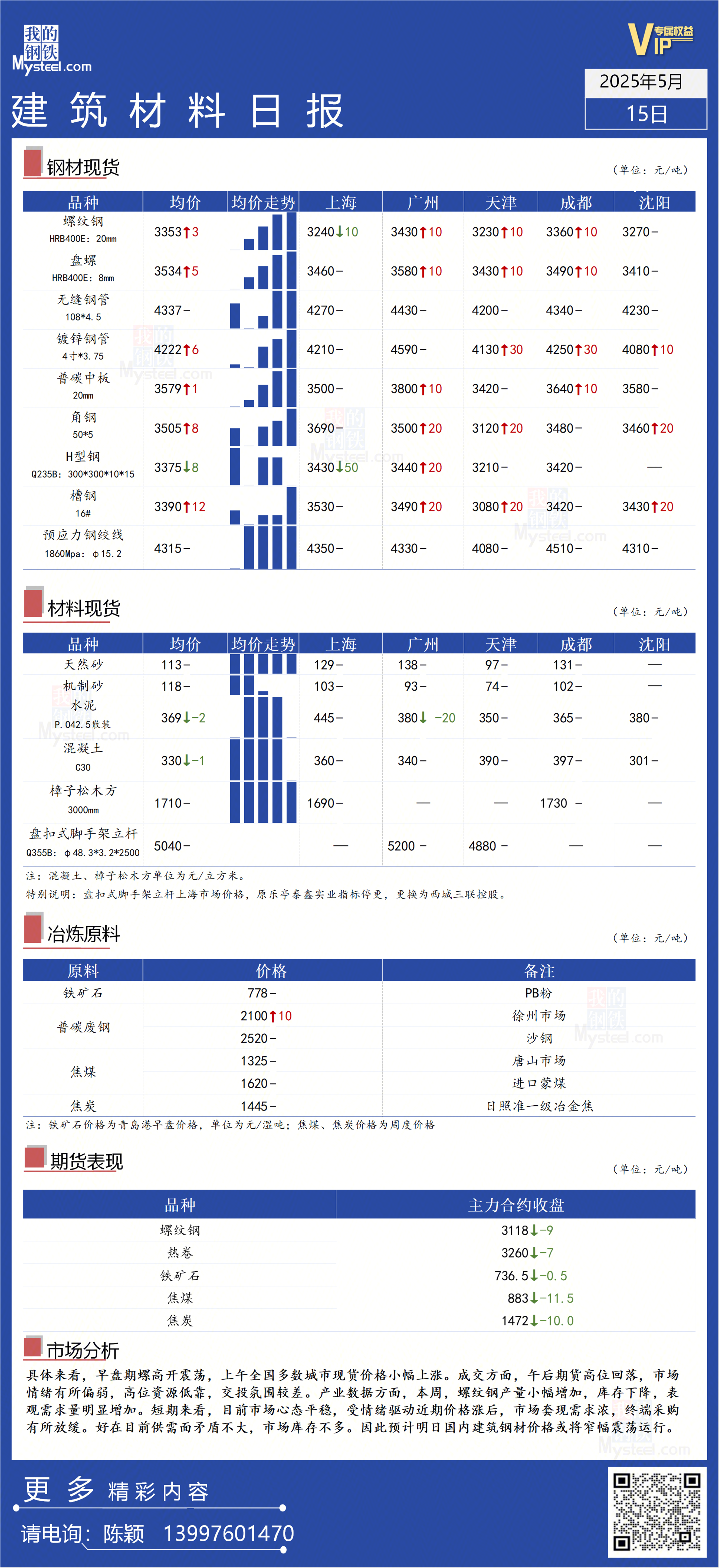 Mysteel日报:目前建材供需矛盾不大,预计明日建材价格或将震荡运行