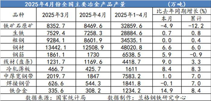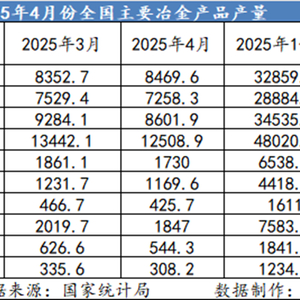 兰格追踪:2025年1-4月份全国主要冶金产品产量
