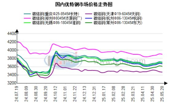 钢厂方面:21日早盘常州东方优特钢出厂价格持稳运行,现45#碳结钢出厂3680元;杭钢优特钢日定价圆钢价格持稳运行,现45#碳结钢出厂3700元,以上均为含税价格;临沂钢投优特钢出厂价格持稳运行,现45#碳结钢出厂3480元;天钢优特钢出厂价格持稳运行,现45#碳结钢出厂3350元。当前市场行情无较大波动,下游需求也是按部就班,钢企端情绪也多谨慎,今日正逢主流特钢厂旬价出台,日定价钢企也想观望一下,早盘出价暂无实际调整。