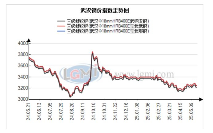 今日武汉建材现货价格持稳。据兰格钢铁研究中心监测显示:截至5月22日,武汉建材市场HRB400EΦ18mm螺纹钢宝武鄂钢3240元,宝武武钢3240元,武钢汉钢3210元。