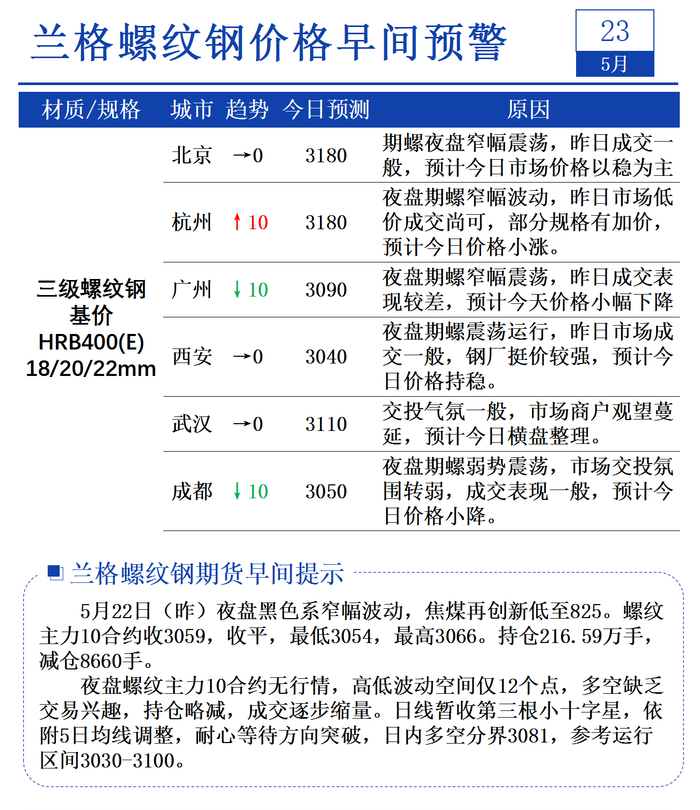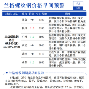 5月23日兰格螺纹钢价格早间预警
