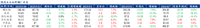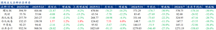 Mysteel聚焦钢铁产业数据(2025年5月29日) —五大品种钢材供需双强,库存季节性去库