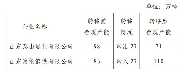 根据济南市焦化产能整合转移工作方案要求,山东泰山焦化有限公司27万吨焦化合规产能指标转移给山东富伦钢铁有限公司,现将转移后2家企业合规产能情况予以公示,欢迎社会公众监督。公示期:2025年6月4日至6月10日,监督电话:0531-51782887。