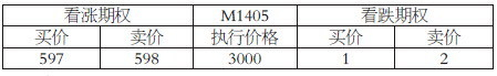 表为某日大连豆粕期权仿真交易价格,标的期货M1405价格为3600元/吨