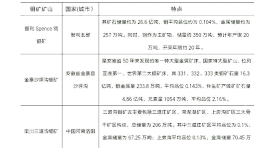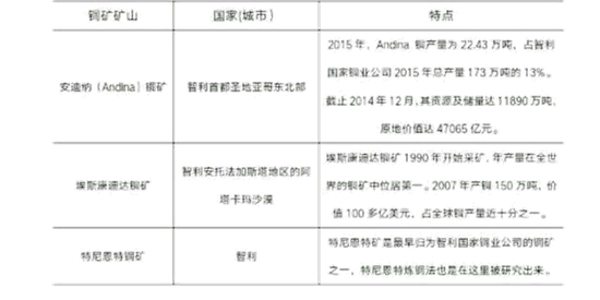 在世界上的比较大的铜矿中,具备规模即铜金属资源及储量在 2000 万吨以上的铜矿项目仅有 24 座,占总项目的不到 1.5%,但其铜金属资源及储量却占全世界总量的 40%以上。其中,智利是拥有是超大型铜矿多的国家,有 9 座超大型铜矿;其次是俄罗斯,拥有 3 座超大型铜矿;美国和秘鲁并列第三,分别拥有 2 座超大型铜矿。