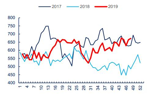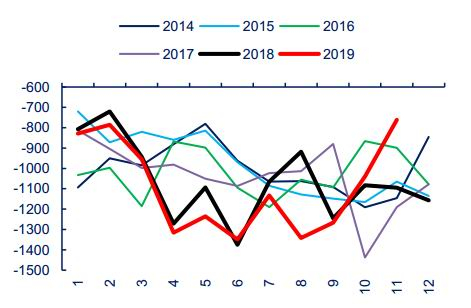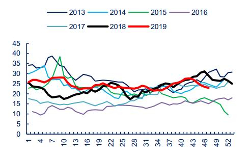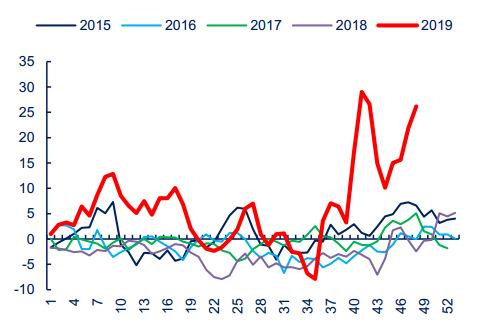 炼厂二级装置开工均处于季节性低位且大幅低于去年,直接造成了当下柴油产量低位、库存低位。假设美国使用VGO调和低硫燃油,大概率减少这三种装置的原料进料,造成三种装置开工低位,那么馏分油的供应受较大影响,柴油利润应该非常不错,但是如果此假设成立,馏分油的库存应该更低,利润更好,因此以上推断被证伪。所以我们的结论倾向于:三种装置开工低位并非是VGO去了调油池,而是当下馏分油利润太差,未来满足IMO低硫燃油需要VGO去调油池,届时馏分油利润应该非常可观,馏分油利润差与三种装置开工低位较难同时出现。