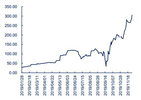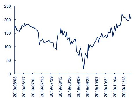 图4:新加坡低硫燃油远期(1912)单位:美元/吨