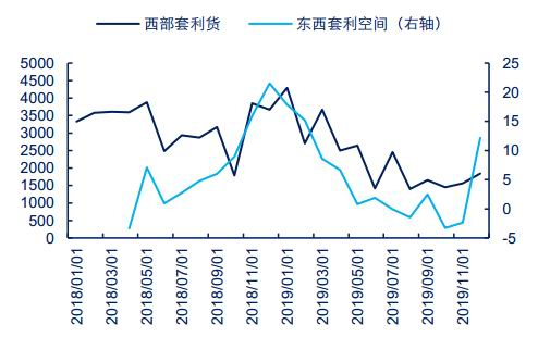 图24:东西套利空间与到港 单位:千吨,美元/吨