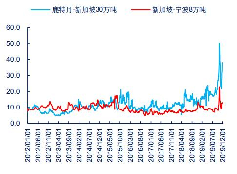 2、IMO导致的高硫燃油供应过剩短期难改,但高硫燃油需求被低估概率大。IMO使得高硫燃油需求断崖式下跌,机构预测未来高硫需求集中在发电、安装脱硫塔等方面,但随着高硫燃油价格下跌到位,高硫加工需求经济性凸显,中国、美国存量和增量加工需求被低估概率大;鉴于运力收缩、切换低硫燃油提升运费预期较足,2020年后高硫运输船只也大概率减少,未来高硫燃油或集中在发电、深加工,需求中心有望转移,出口退税落实前,若高硫燃油无法实现国内生产转保税,未来内外盘价差走扩概率较大。
