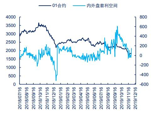 2020年1月1日,全球船用380燃料油含硫量要强制由3.5%转换为0.5%,意味着2020年以后高硫燃料油需求断崖式下滑,IMO临近,供需错配(供应降幅大于需求降幅)随着高硫燃油贴水、月差从高位崩塌式而结束,带动Fu加速下跌,内外盘价差快速回归,新加坡高硫380裂解价差历史低位,高硫燃油悲观预期得到释放。