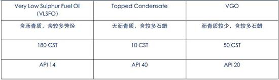 全球生产低硫燃油主要有高低硫组分调和(主体馏分型和少量残渣型混合)和直接生产(低硫原油直馏渣油和渣油加氢脱硫两种)。方式一:VLSFO沥青质较多,含较多芳烃,此种低硫燃油更多依靠重质原油渣油加氢或重质低硫原油直馏生产,因此API较高,粘度较高。方式二:用VGO调和(适用于渣油加氢不足的国家),此方法生产出的低硫燃油沥青质较少,但含较多石蜡,同时粘度较小。