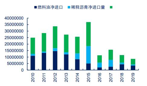 我们认为:保守估计下稀释沥青和燃料油总的净进口量高峰出现在2012年(2015年原油暴跌导致炼厂利润大跌,稀释沥青净进口量大增,以此给我们的启示是炼厂利润恶化到一定水平会切换原料),此数量大致代表了过去国内进口燃料油的加工需求,在利润恶化到一定程度之后,国内高硫燃油进口需求仍有韧性:燃料油原料精细化工需求稳定;随着高硫燃料油价格下跌到位,传统燃料油进料地炼加工经济性凸显;大炼化陆续投产,地炼利润恶化预期较强,未来或有更多的炼厂为降低成本重新青睐燃料油(囿于地炼原油进口配额强制性以及燃料油进口配额不足性,地炼原油与燃料油原料之间的切换腾挪空间有限,但边际变量对高硫燃油需求拉动作用明显)。(详见【中信期货能化(燃料油)】高硫燃油需求仍有韧性,沥青有概率成本中枢下移——专题报告20191127)。