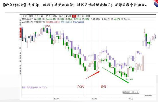 今年05和09合约交割时情况比较类似,高库存(历史同期高位)、远月合约高升水、低利润(低价格)、以及高持仓。因此在判断09合约交割附近行情的时候,自然想到了结合05合约情况来判断,当时05合约先反弹上行,等投机空头移仓完毕后,重回弱势破前低,因此预计09合约因移仓导致的反弹上行行情是不值得参与的,将终会弱势,有望破前低。